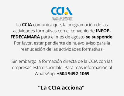 Sin embargo la formación directa de la CCIA con las empresas está disponible. Para más información al WhatsApp: +504 9492-1069