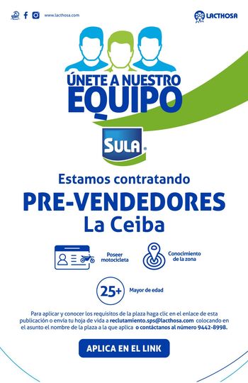 Pre-vendedores en La Ceiba: https://www.lacthosa.com/bolsa-de-…/pre-vendedor-tegucigalpa